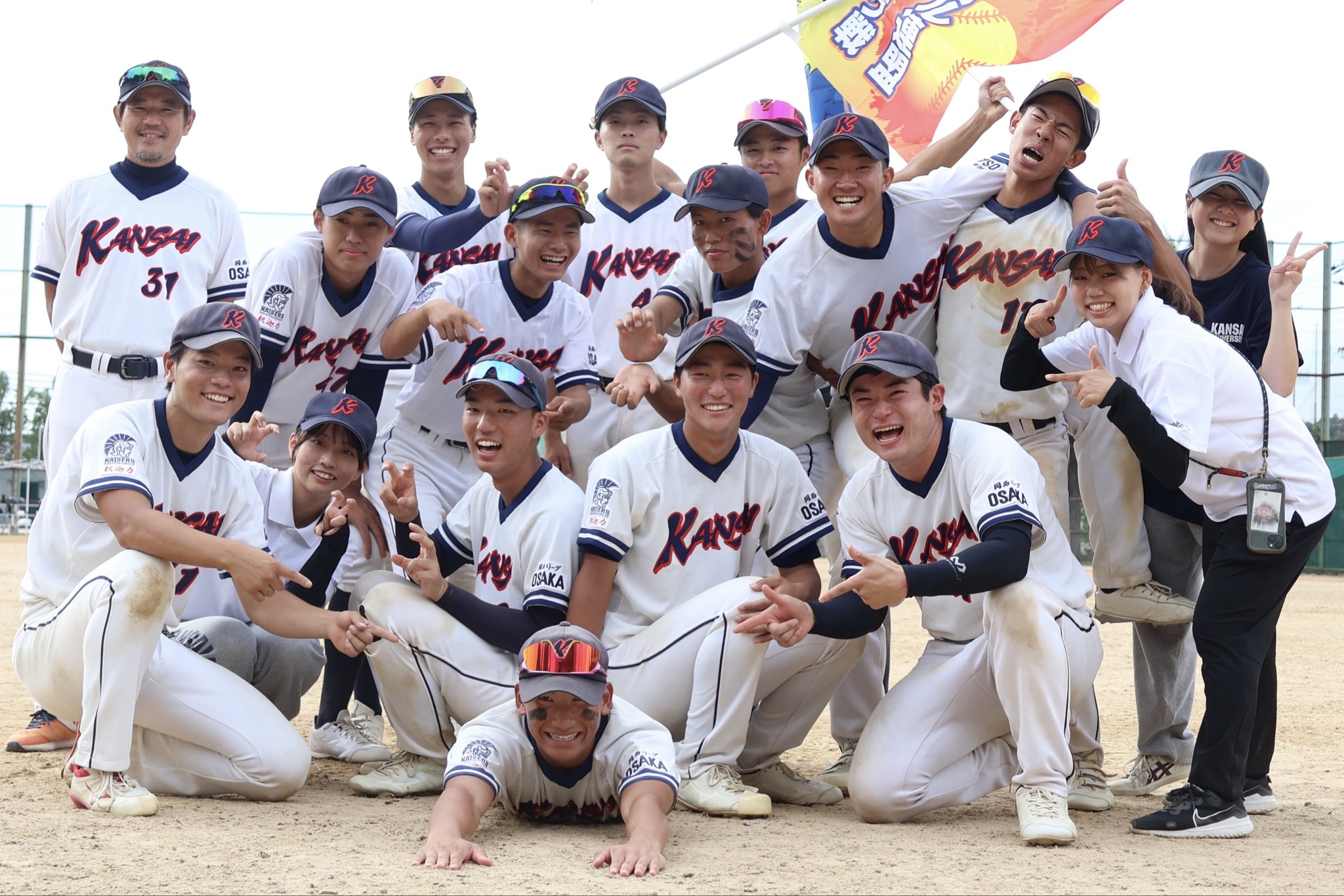 第57回秋季関西男子学生リーグ戦の第4戦と最終戦が12日、神戸学院大学第5グラウンドで行われ、関西大学は第4戦で京都産業大学を3−0でシャットアウトゲームで制し、最終戦は京都大学に11−0の5回コールドで快勝し、通算4勝1分で3年ぶりのリーグ優勝を果たしました。