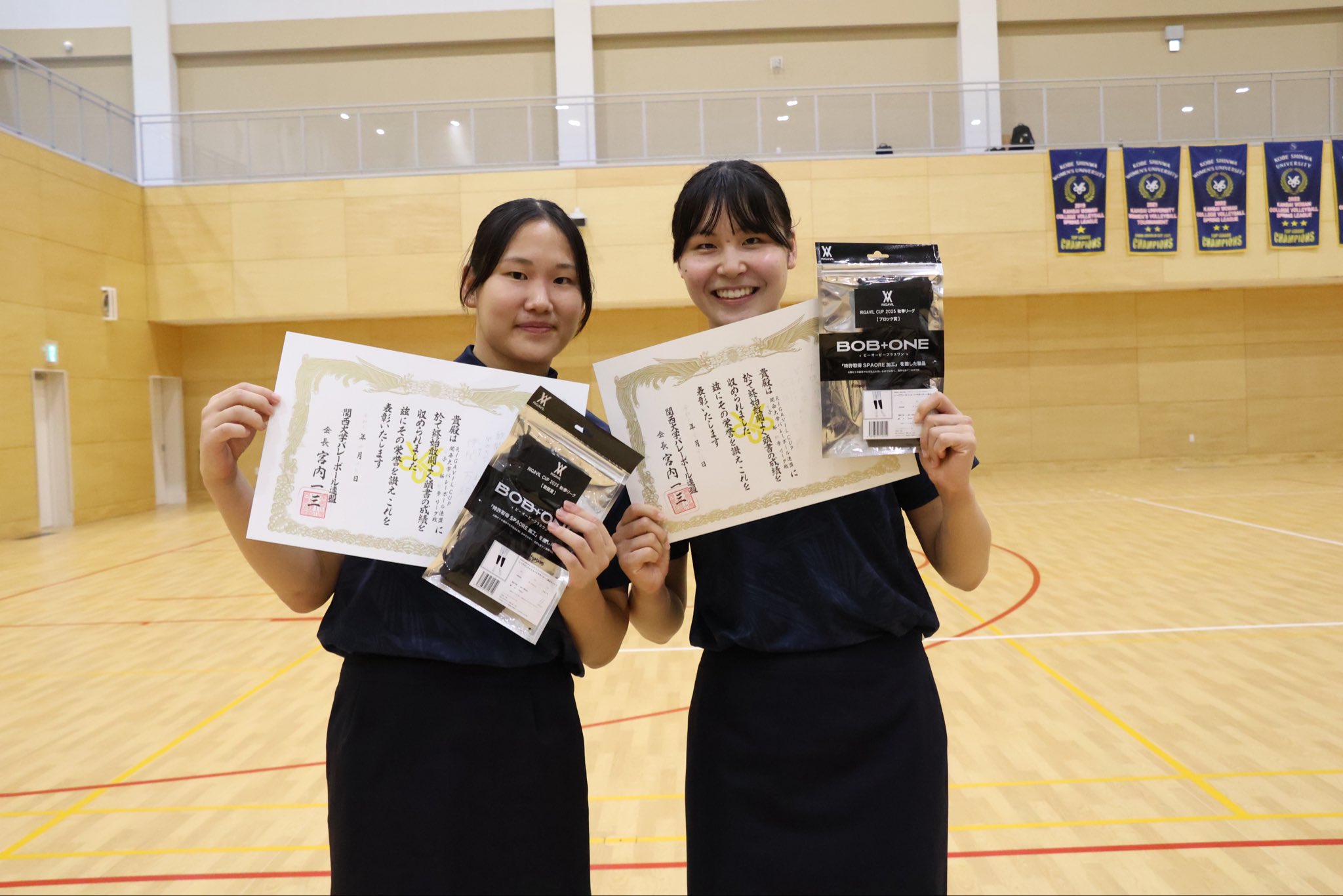 閉会式では各賞が発表され、女子は伊関万絢主将(文学部4年)が敢闘賞を、ルーキー花岡明里(商学部1年)がブロック賞を獲得しました。また、男子は小山海皇(人間健康学部2年)がベストスコアラー賞を受賞しました。