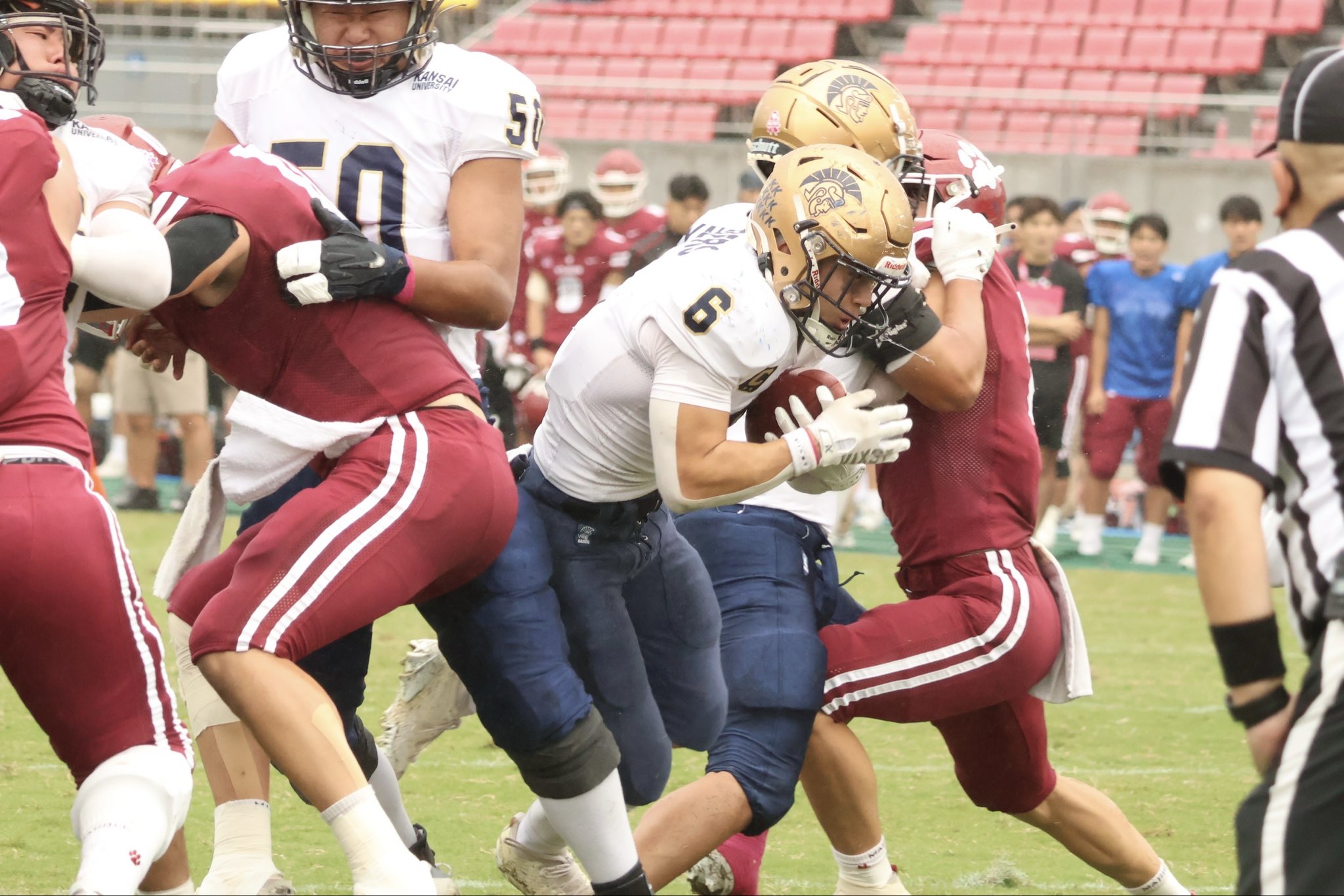 関西学生アメリカンフットボールの第6節が10月26日、たけびしスタジアム京都で行われ、4勝1分の関西大学は5戦全勝の立命館大学と対戦し、10-27で敗れて優勝を逸しました。