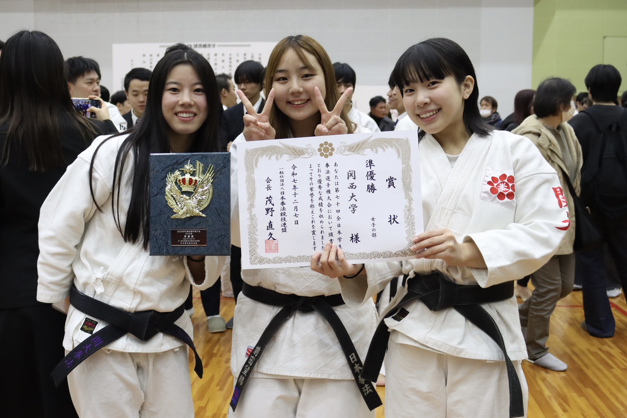 準優勝に輝いた拳法部女子=関大スポーツ提供