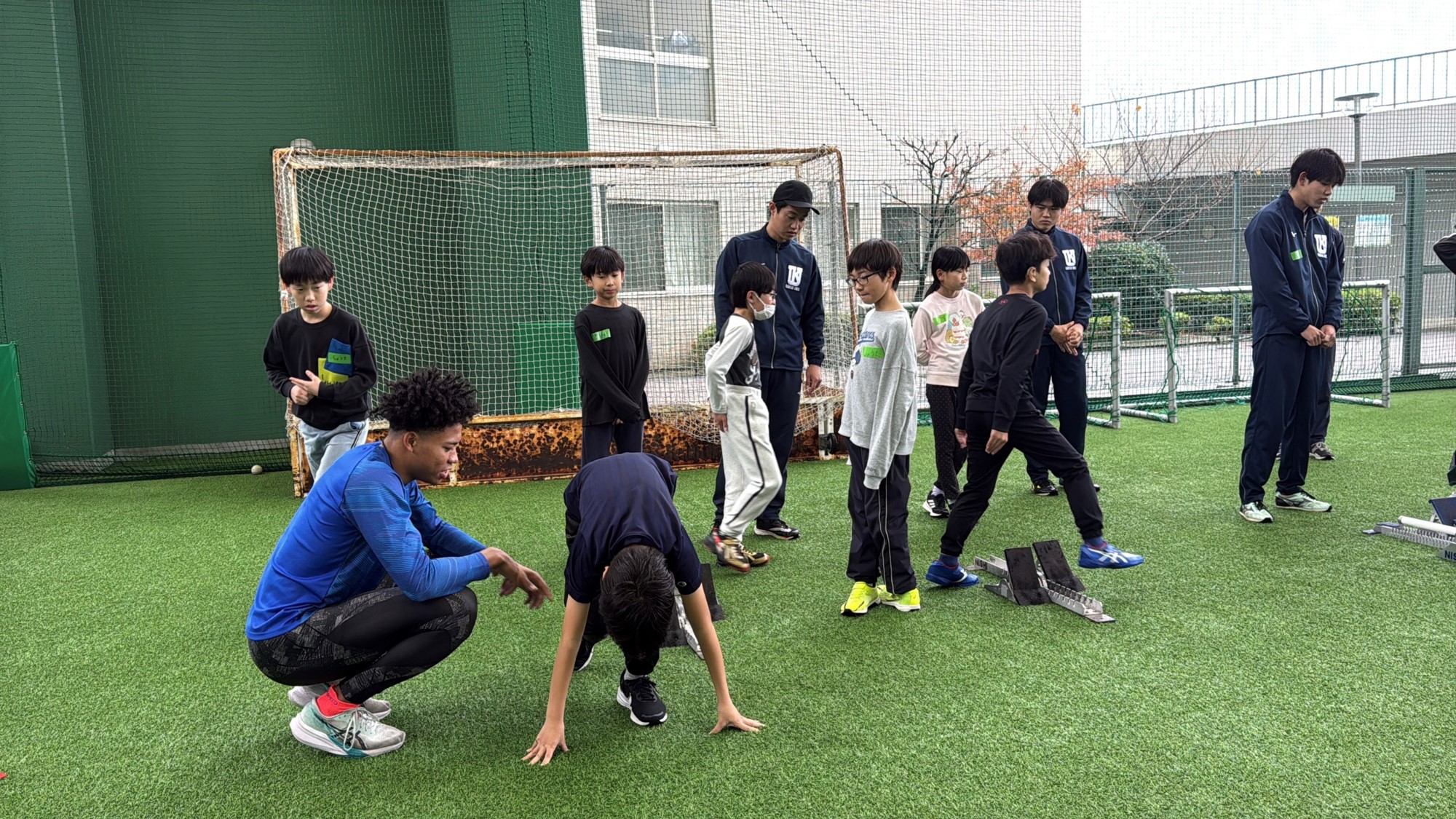 体験に参加した中学では陸上競技をしたいという女子児童は「スターティングブロックを使ったスタート練習では、最初は簡単だと思っていたけどやってみるとすごく難しくてうまく出来なかったけど、大学生の皆さんが教えてくれてうまくできるようになった」と笑顔で話していました。