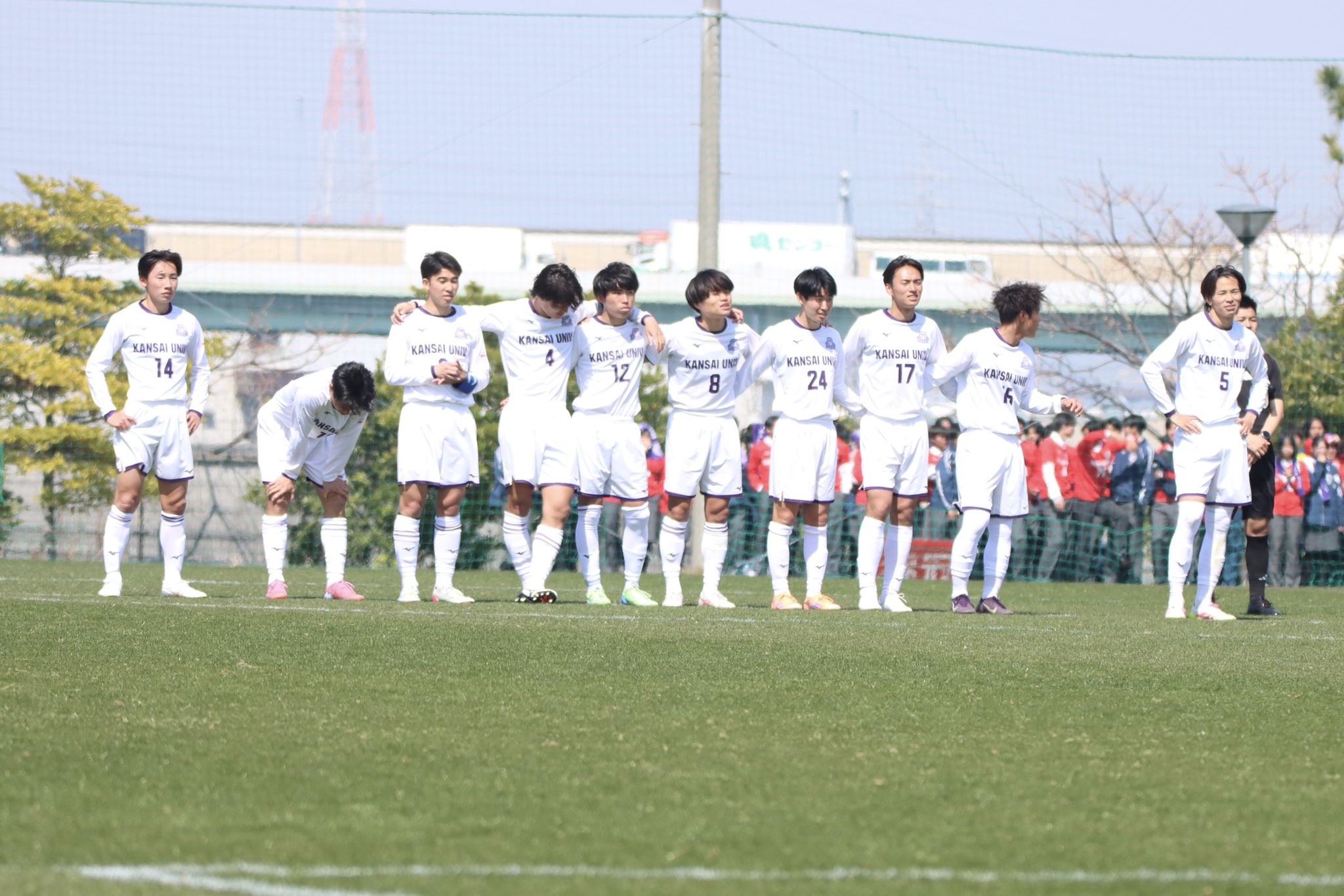 延長戦でも決着がつかずにPK戦にもつれ込んだ死闘は、関西大学の3人目までがゴールを決めることができずに万事休す。関西大学はPK戦1−3で敗れて天皇杯出場への夢を絶たれました。
