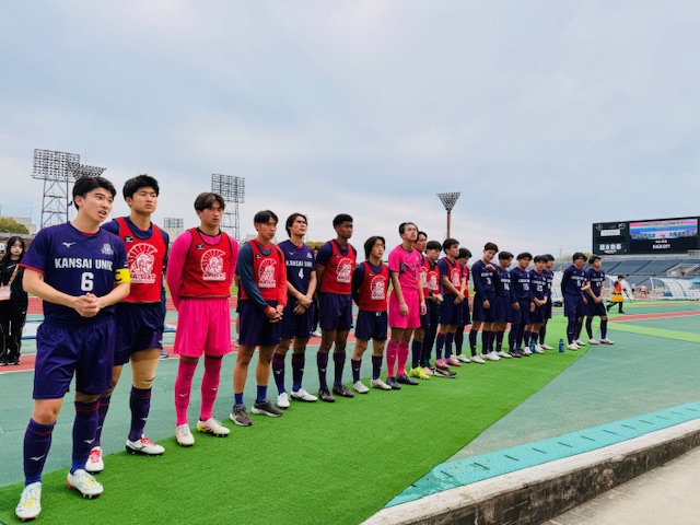 関西学生サッカーリーグ前期開幕戦が5日、たけびしスタジアム京都で行われ、昨季7位の関西大学は同8位の同志社大学と対戦し、0-1で敗れて開幕黒星発進となりました。