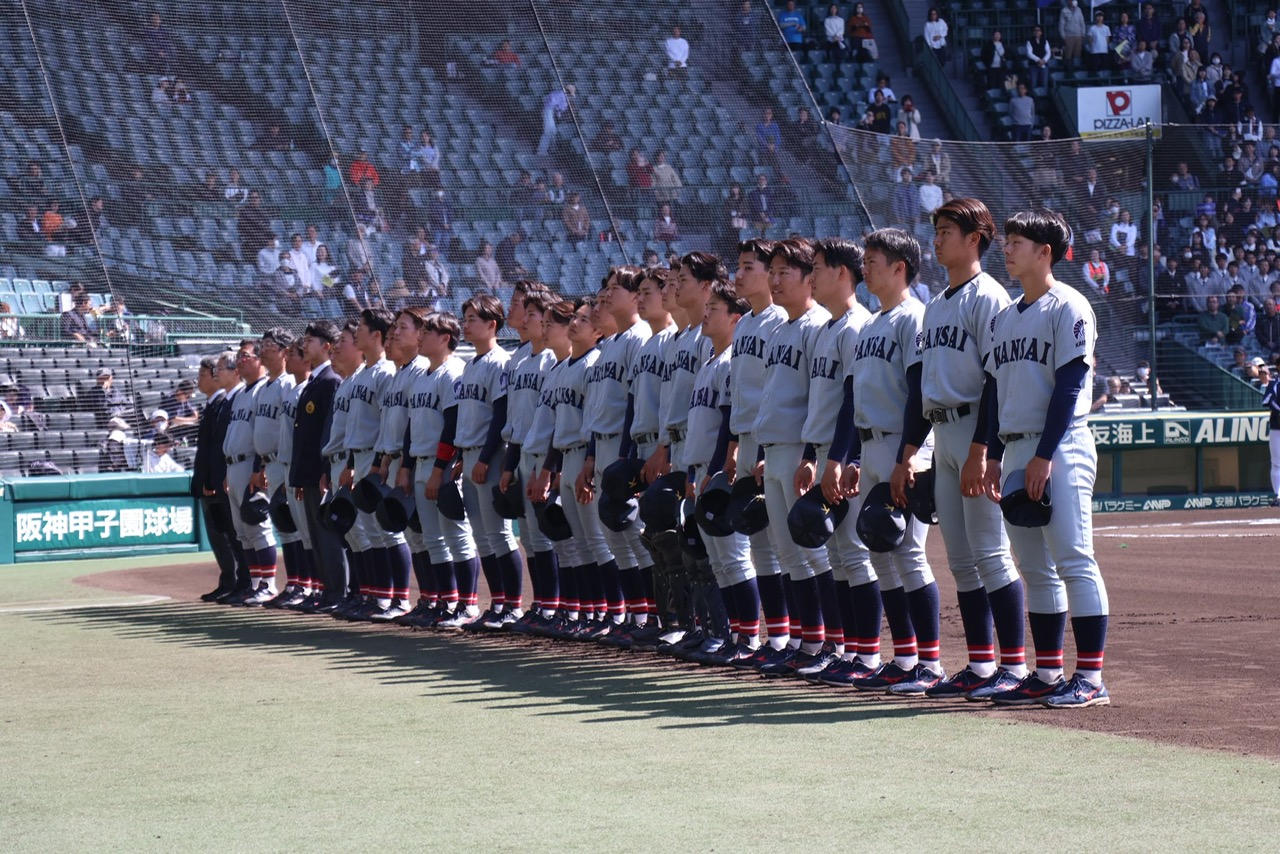 甲子園で整列する関西大学=関大スポーツ提供