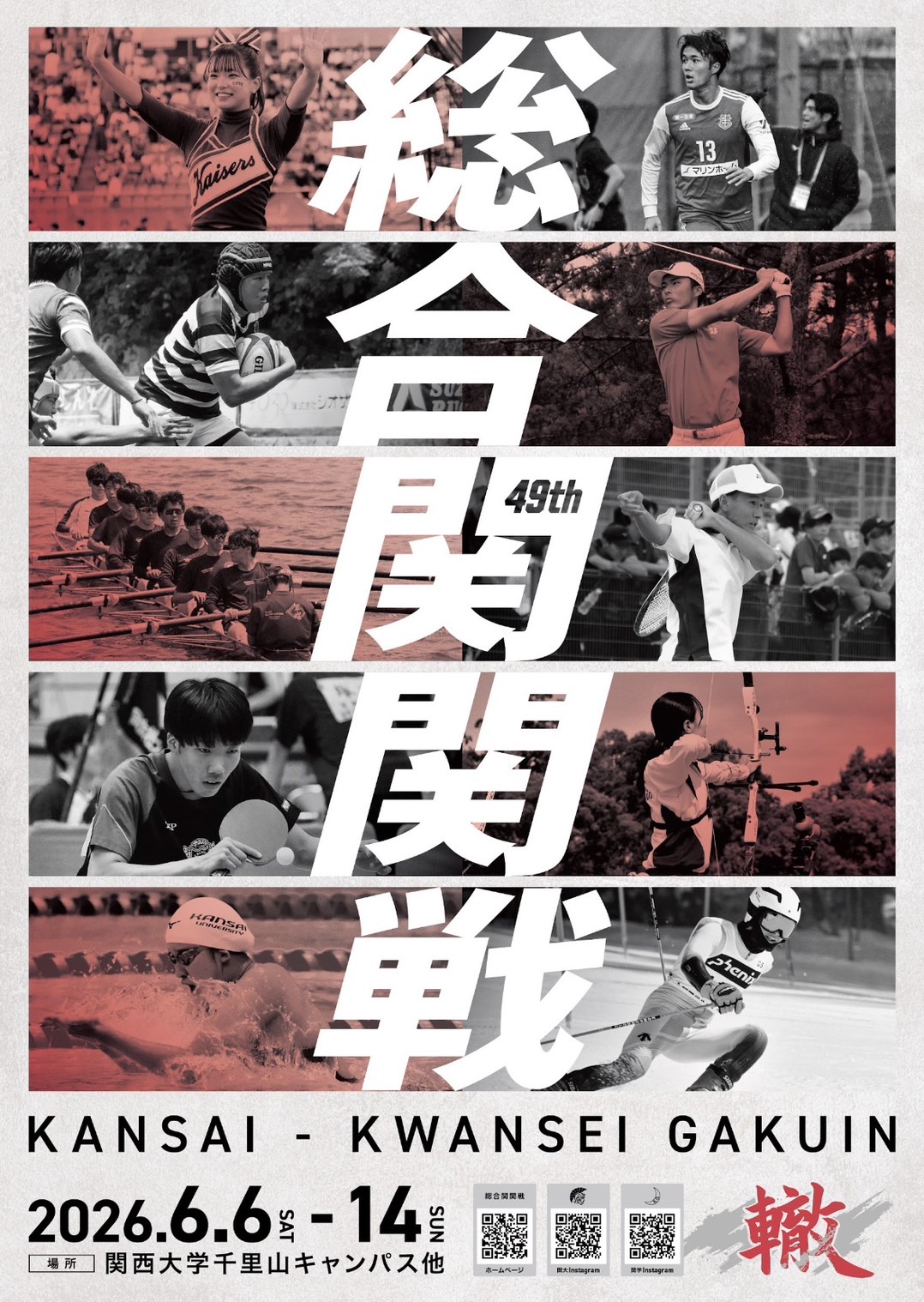 関西大学体育会本部(宮本陽大本部長、商学部4年、空手道部)は20日、第49回総合関関戦の本戦(6月6日〜6月14日)の試合日程および本大会キービジュアル(ポスター)を発表しました。