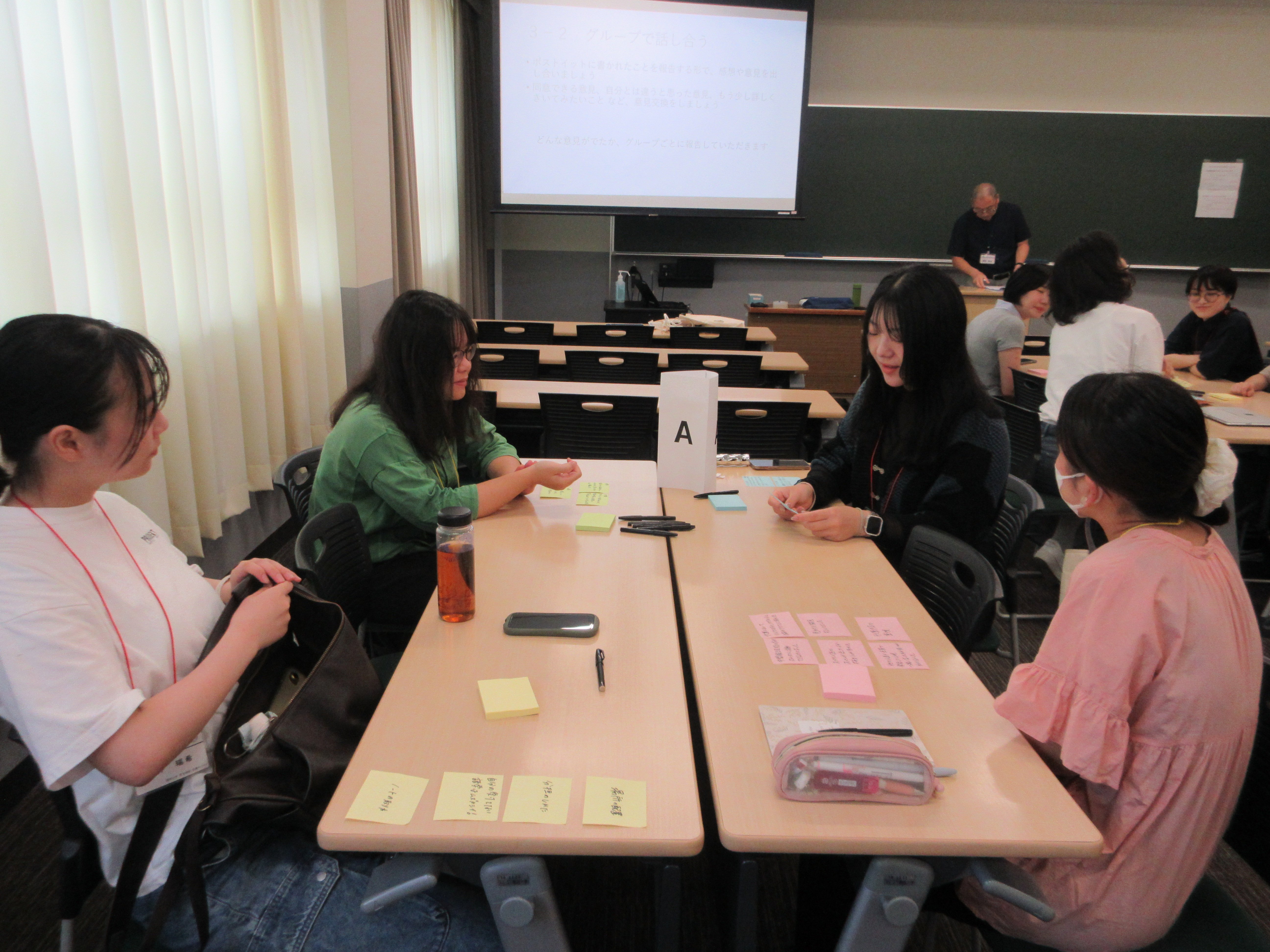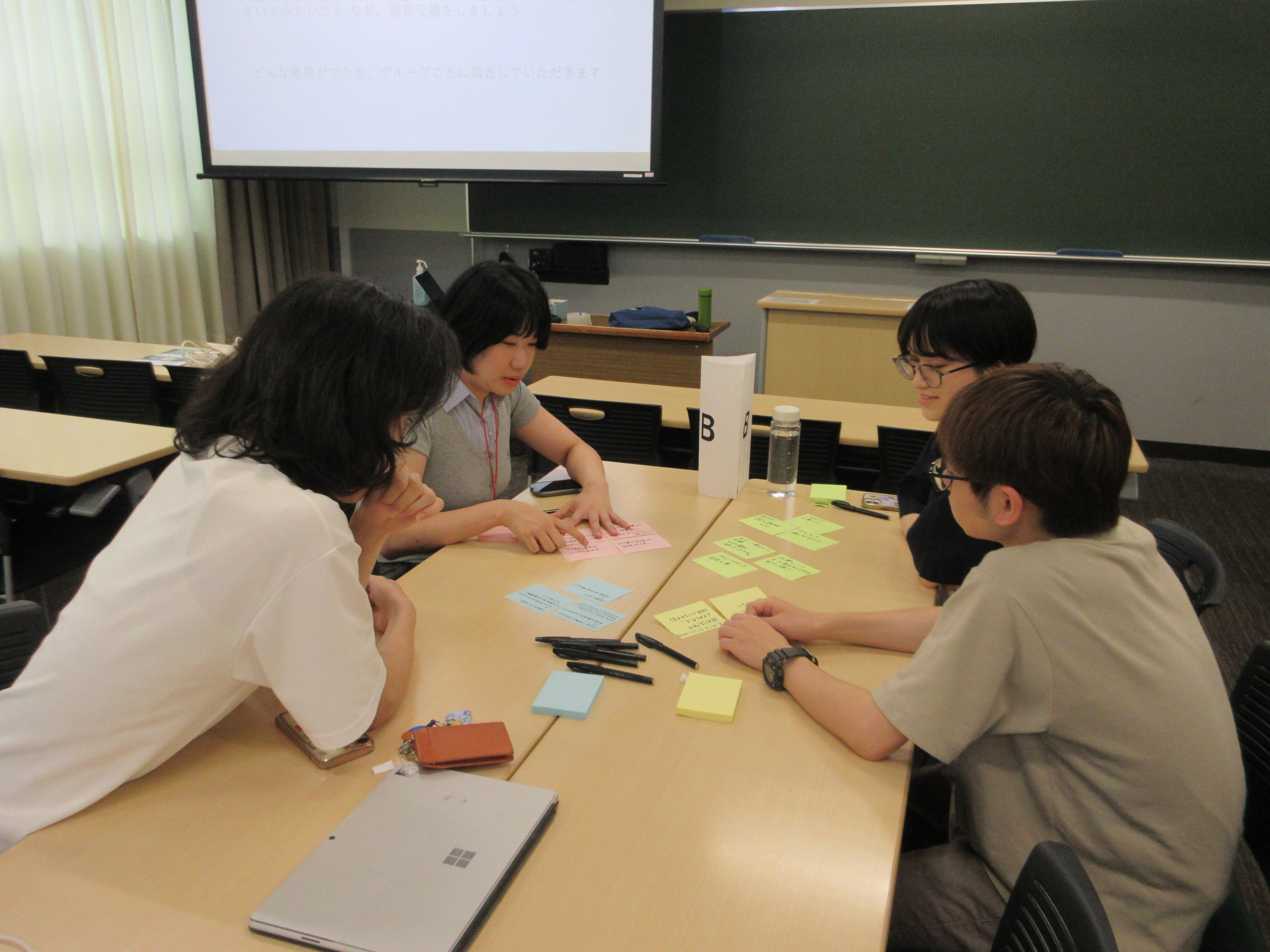 学生支援スタッフ14名が3つのグループに分かれ、活動を通じて思ったこと、感じたこと、学生支援スタッフとしてこんなことがしたいといったテーマで話し合い、春学期の支援活動を振り返りました。