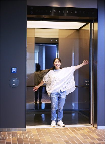個人的に好きな高槻ミューズキャンパスの設備は「エレベーター」です。6基あり、広々としているので、ぎゅうぎゅう詰めになることがほとんどなく気に入っています。さっきまで受けていた授業の担当教授と私だけになって、妙に緊張してしまうこともあります(笑)。