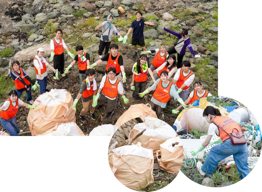 地震による隆起でゴミがたまりやすくなった現地での作業は体力を要しましたが、地域の方々からのお茶の差し入れや温かい励ましに支えられました。