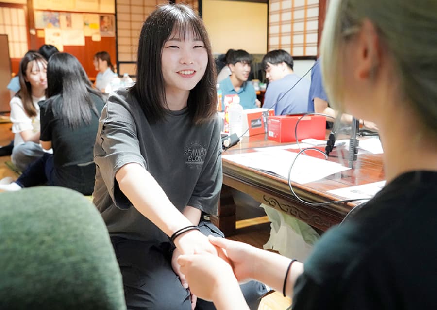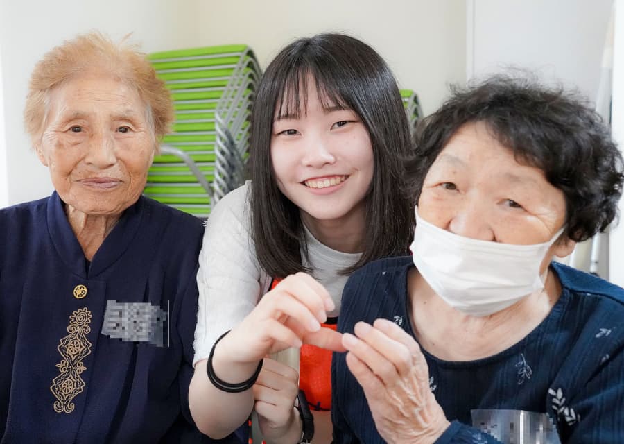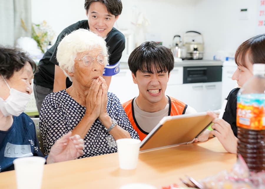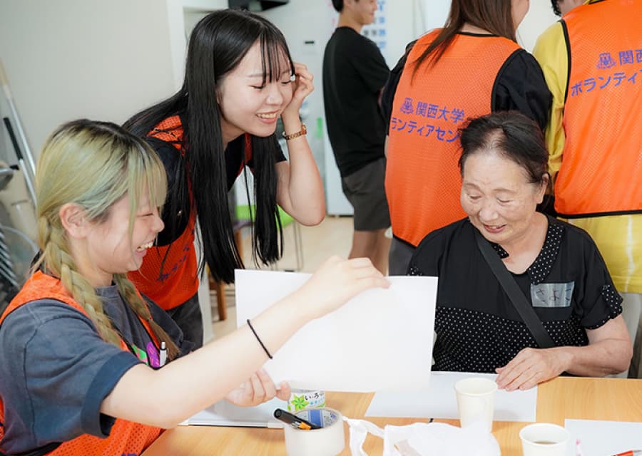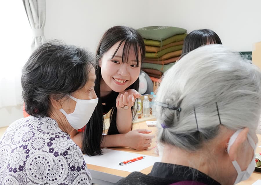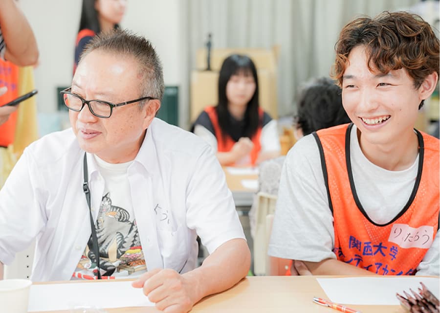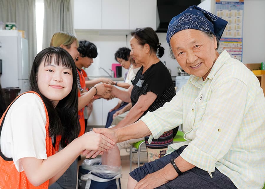 現地の方々に少しでも楽しい時間を過ごしてもらいたいと、学生自らレクリエーションを企画、「魚へん漢字クイズ」や「絵しりとり」などを実施しました。会場には笑い声があふれ、学生と地域の方々が和やかに心通わせるひとときを過ごしました。