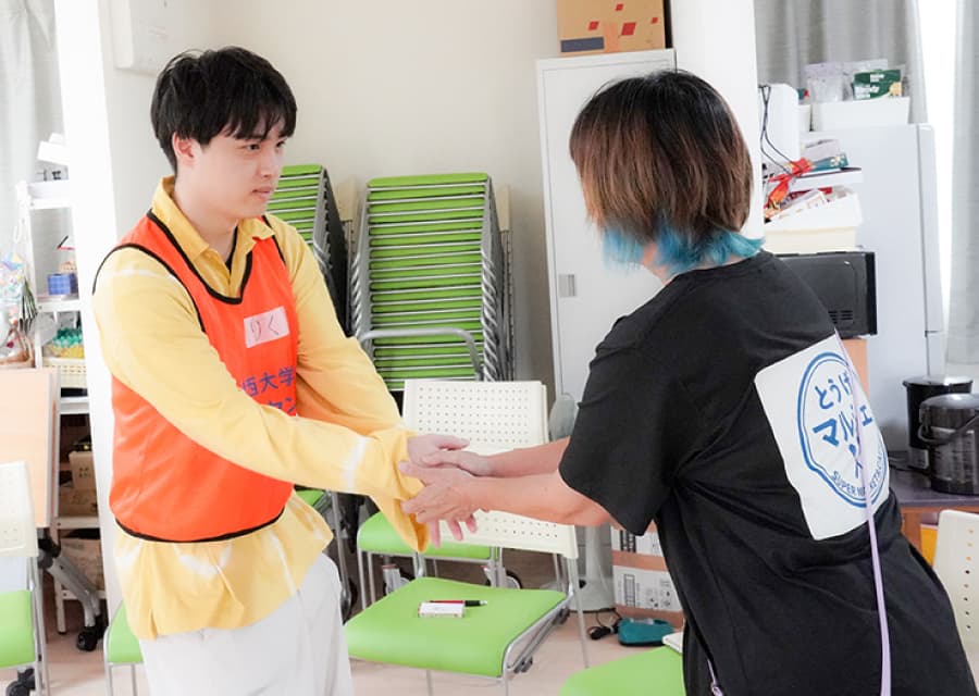 現地、能登半島で行った被災地の方々との交流が最も印象に残っています。被災地の方々と交流する中で、学生メンバーでどのようなレクリエーションをすれば現地の方たちと円滑にコミュニケーションを取れるのかをみんなで考えました。その過程で学生みんなと仲良くなれたし、被災地の方々ともコミュニケーションが取れたのですごく楽しかったです。レクリエーションを行う上でさまざまな年齢層の方がいるのでそういったことを考慮するのも難しかったですが、達成感がありました。