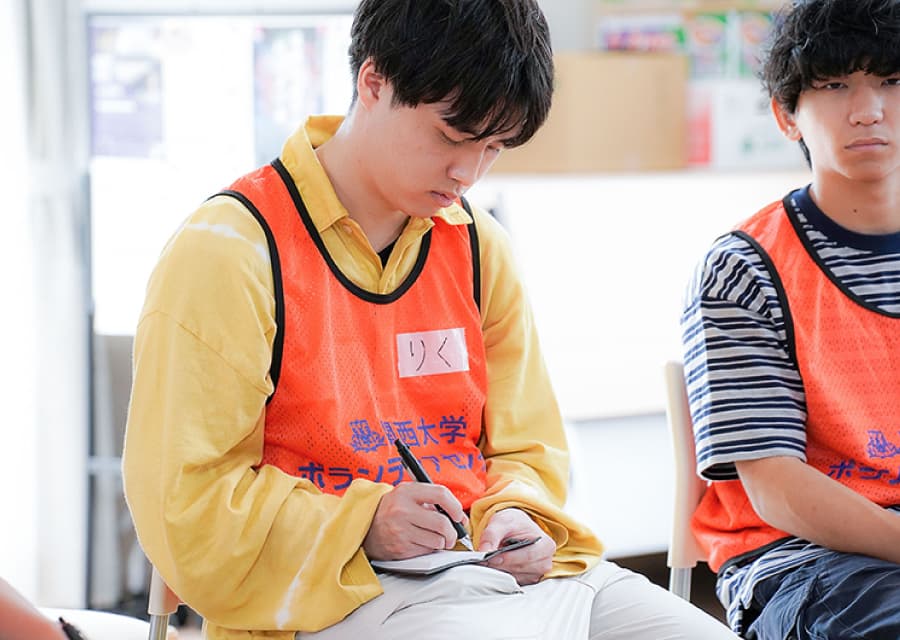 この活動に参加させていただいたきっかけは、被災者の方々を支援する活動をしたいとずっと思っていた春に、関西大学での災害ボランティアの講座を受講させて頂いたことでした。私は以前より防災や自然災害の分野に関心があって社会安全学部に入った経緯もあり、現地での活動を通して力になりたいという思いがありました。併せて、漠然とはした目標みたいな感じで、誰かの支え、助けになるような活動がしたい、誰かのためになりたいという気持ちをずっとありました。そこで災害ボランティア講座と被災地支援活動を関西大学で行うことを知り、講座受講後に活動に参加したいという想いになりました。