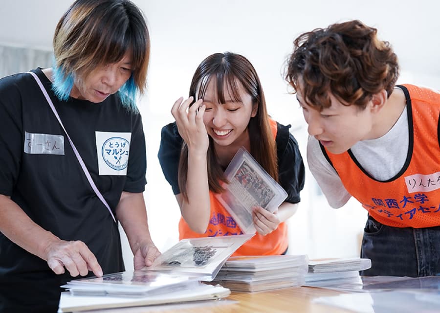 5月から8月にかけて約80名の関大生が洗浄した写真を、10冊のアルバムにまとめて持ち主の方へ返却しました。持ち主の方は涙を流して喜ばれている様子でした。写真の返却後には、震災当時の様子を伺い、力強さとともに喪失の悲しみに触れる機会となりました。