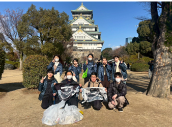 観光地として人気の大阪城公園は当日、外国人観光客の方や公園内でランニングを行う利用者など多くの人で賑わっている印象を受けました。園内のゴミ拾い活動を行い、環境美化に努めるとともに、ポイ捨て防止の啓発にもつながる取り組みとなりました。