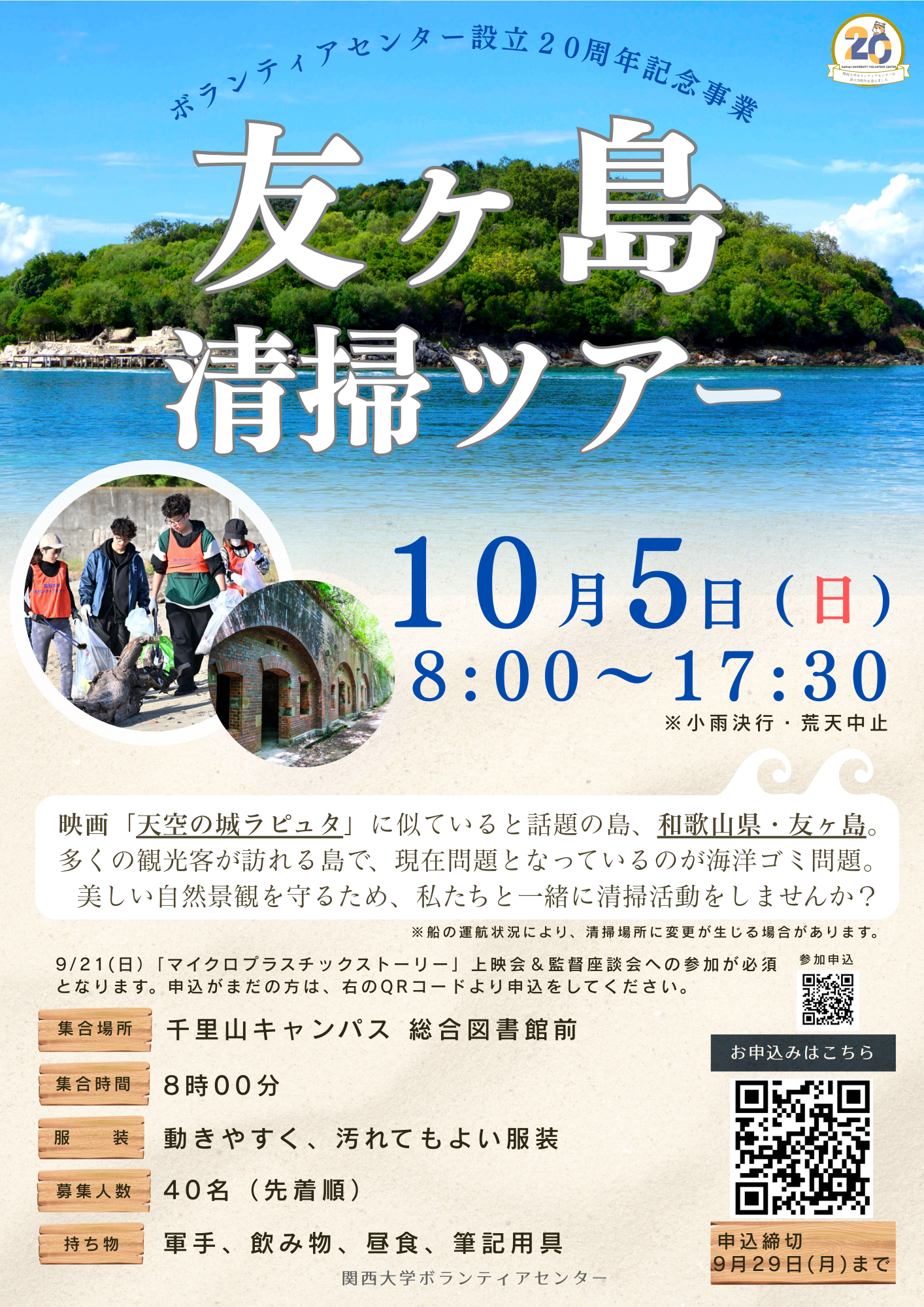 【参加者募集】ボランティアセンター20周年記念事業 「マイクロプラスチックプロジェクト~友ヶ島清掃ツアー~」