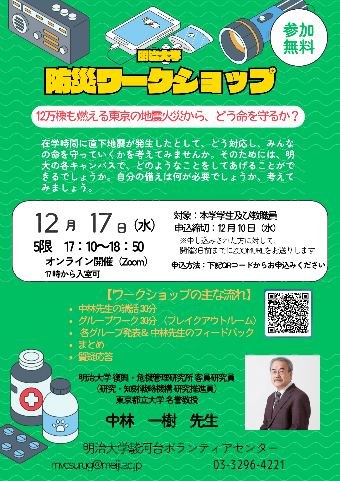 【明治大学主催講座】防災ワークショップ ~12万棟も燃える東京の地震火災から、どう命を守るか?~