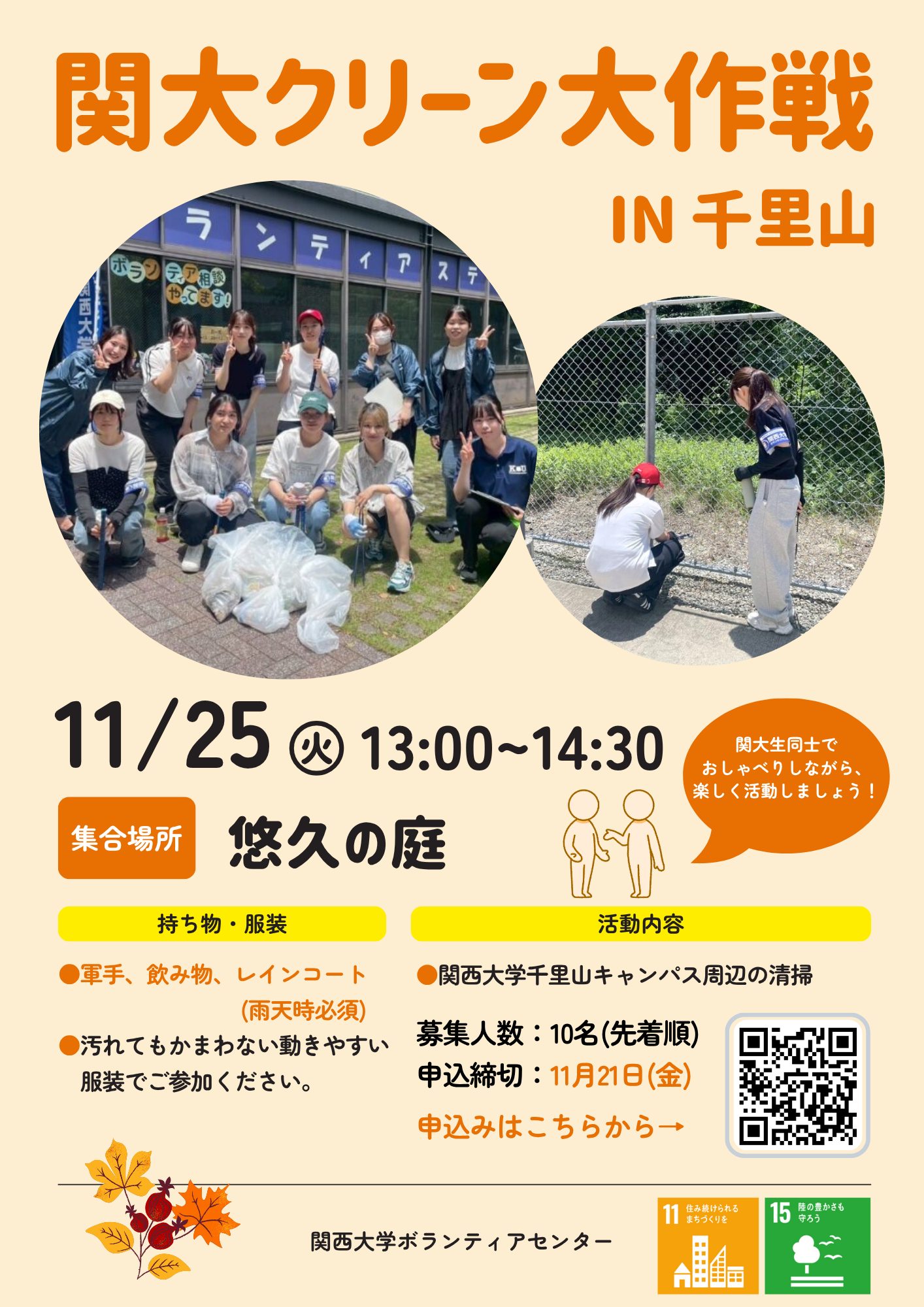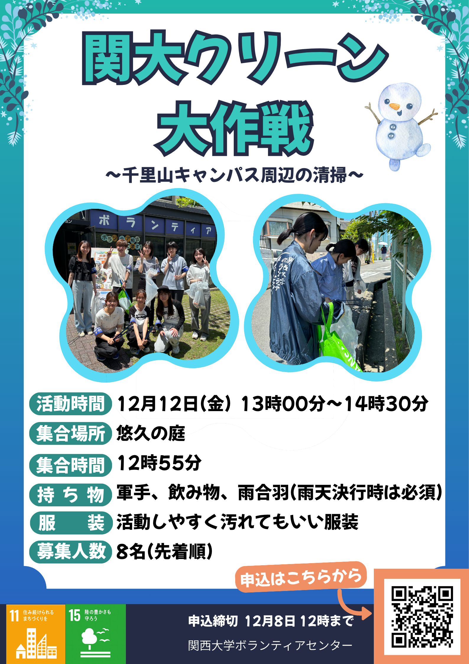 【ボランティア募集】関大クリーン大作戦~千里山キャンパス周辺の清掃~