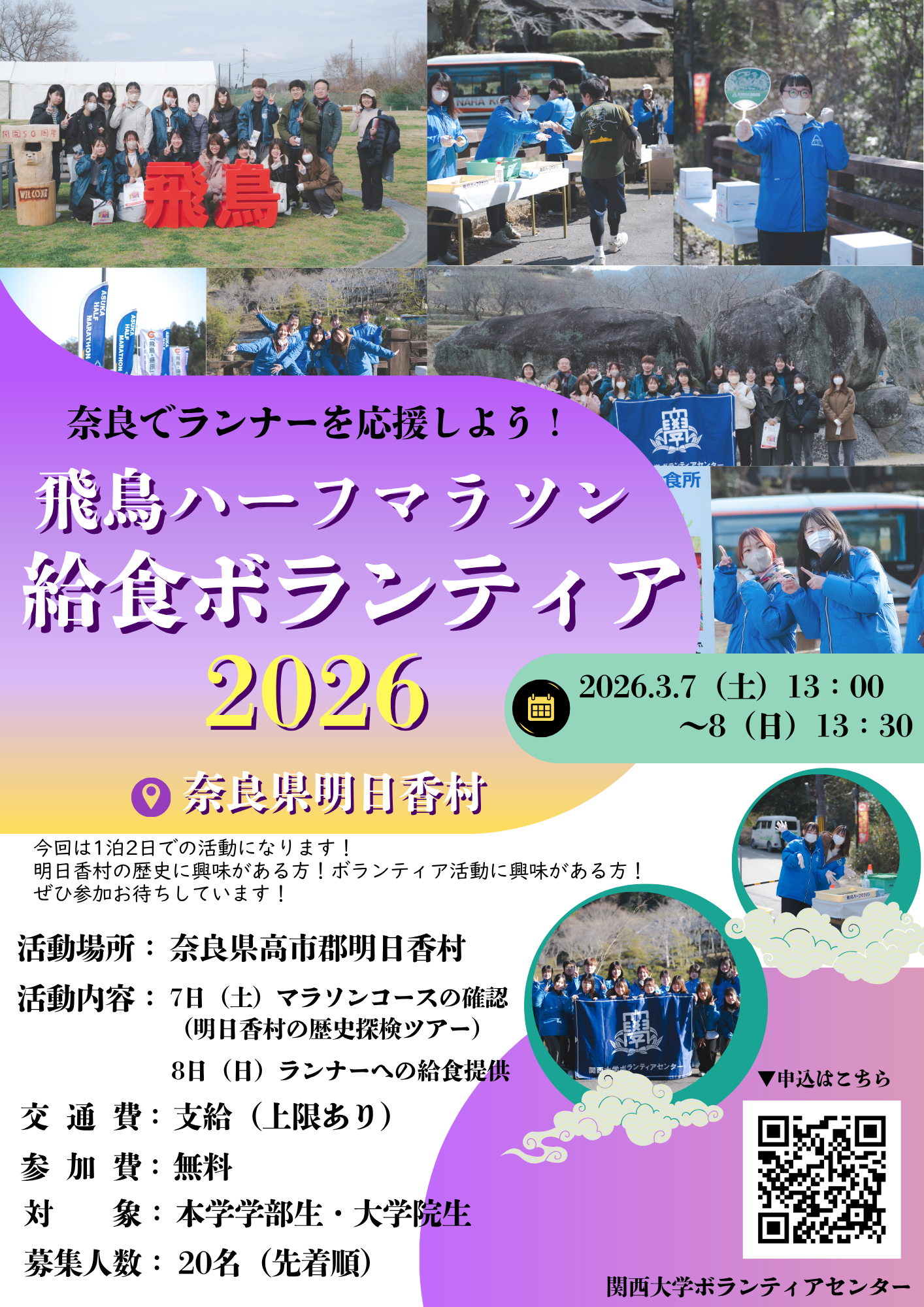 【参加者募集】飛鳥ハーフマラソン2026給食ボランティア